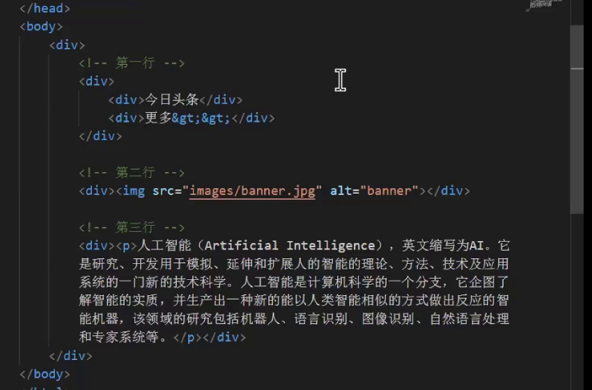 div 这个也是块元素 ,默认占一行 而且我们是用来嵌套使用