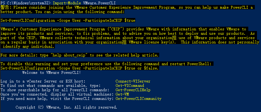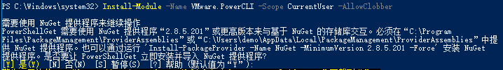 安装必须模块:Install-Module -Name VMware.PowerCLI -Scope CurrentUser -AllowClobber