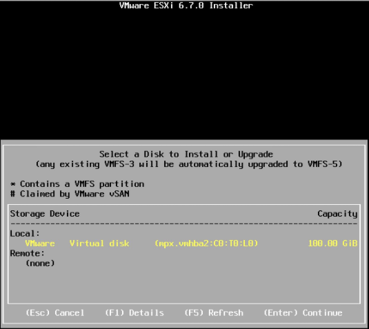 选择Esxi6.7的安装位置