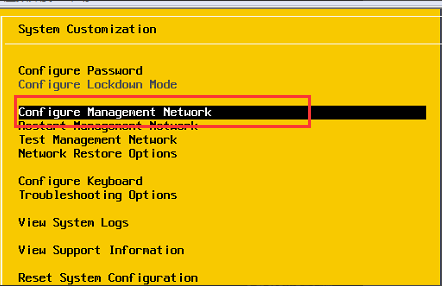 输入密码后进入设置菜单,选择“Configure Management Network"并回车