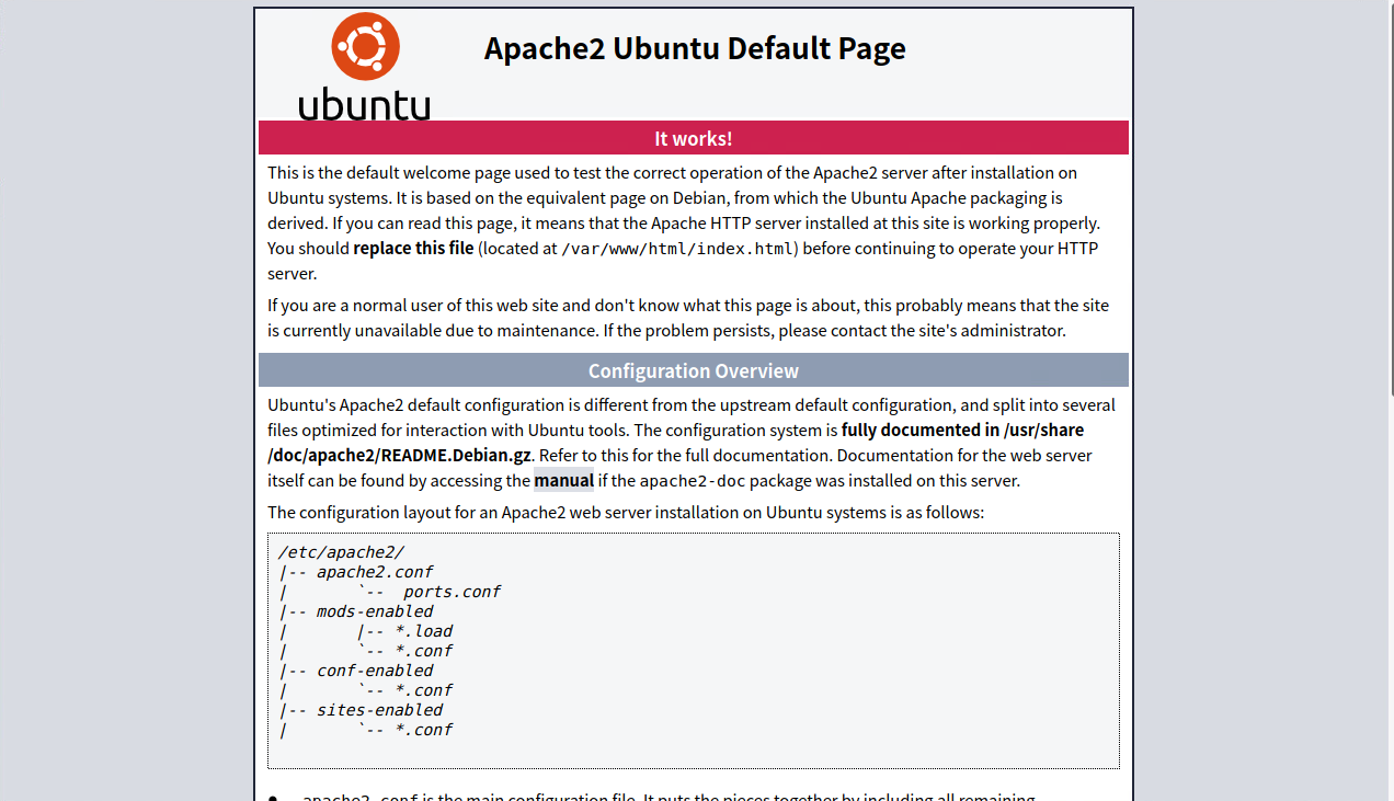 在本地计算机(您自己使用的电脑打开浏览器)输入http://< IP 地址> 查看到 “it works” 界面,说明 apache2 安装成功。