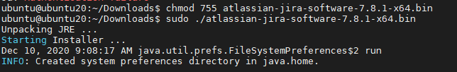 chmod 755 atlassian-jira-software-7.8.1-x64.bin //给jira文件赋予755可执行权限