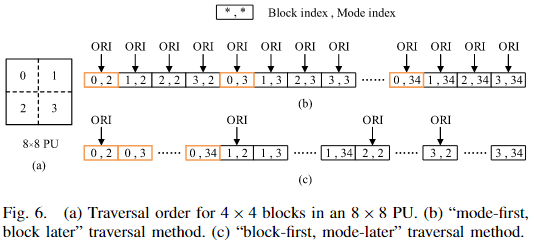 解决方案:重排 8×8 块的处理顺序,将 16×16 和 32×32 PU 中的 8×8 块插入空闲周期,充分利用气泡(图11b)。