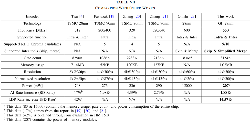 复旦范老师团队的论文,主要介绍了一种新的硬件编码器,该编码器支持HEVC标准,能够实现高效的视频编码,具体包括对内编码和外编码的支持。文中提出了一系列硬件导向算法,以减少编码器模块之间和内部的数据依赖性,降低计算复杂度,同时保持可接受的压缩效率。通过采用统一的4×4引擎、二维数据重用以及时间调度等设计,最终实现了在GF 28nm工艺下以3154K门数和1.02MB内存占用,达到4K@30fps的编码速度。