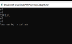 #include<stdio.h> main() { int a=8,b=9,c; printf("a=%d\nb=%d\n",a,b); c=b; b=a; a=c; printf("交换值后;\na=%d\nb=%d\n",a,b); }