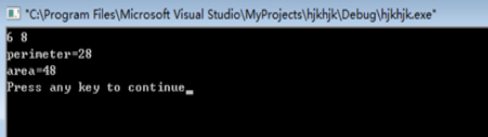 #include<stdio.h> main() { int length,perimeter,area; int wide; scanf("%d%d",&length,&wide); perimeter=(length+wide)*2; area=length*wide; printf("perimeter=%d\narea=%d\n",perimeter,area); }