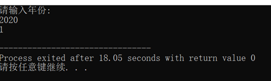 4.使用函数,判断一个年份是不是闰年,如果是闰年返回1,否则返回0