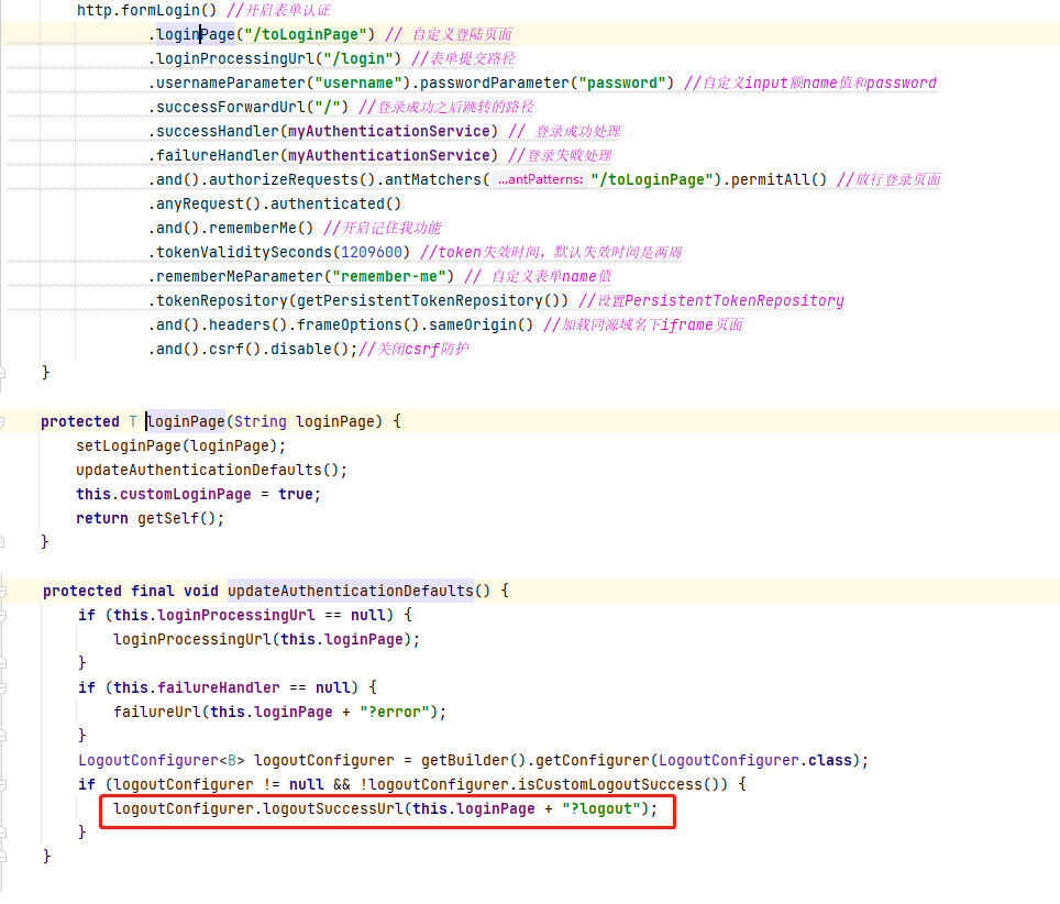 发送 "/logout" 之后,退出完成之后没有指定的情况下会默认跳转到登录页面,如下源码: