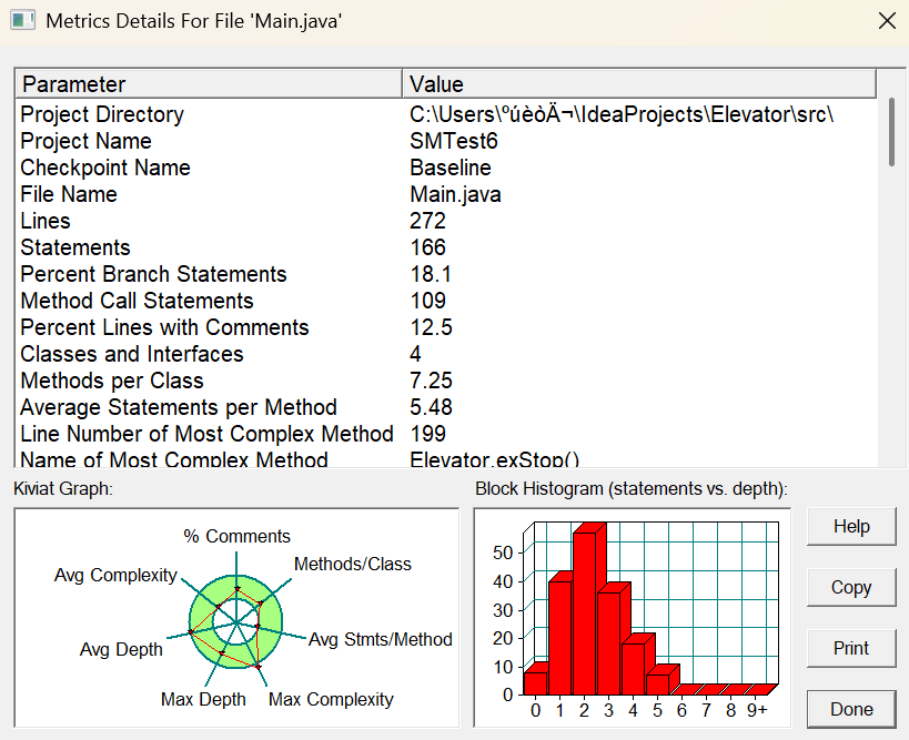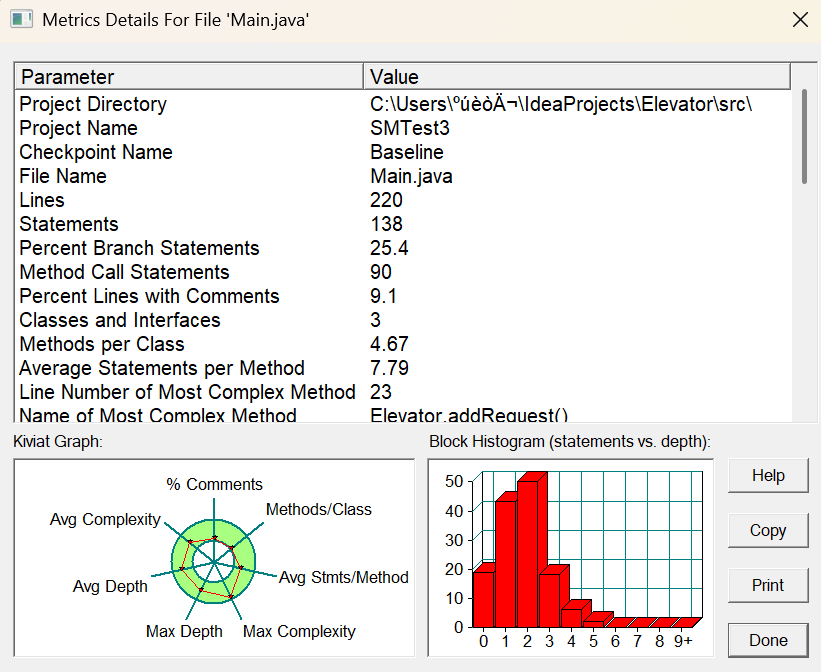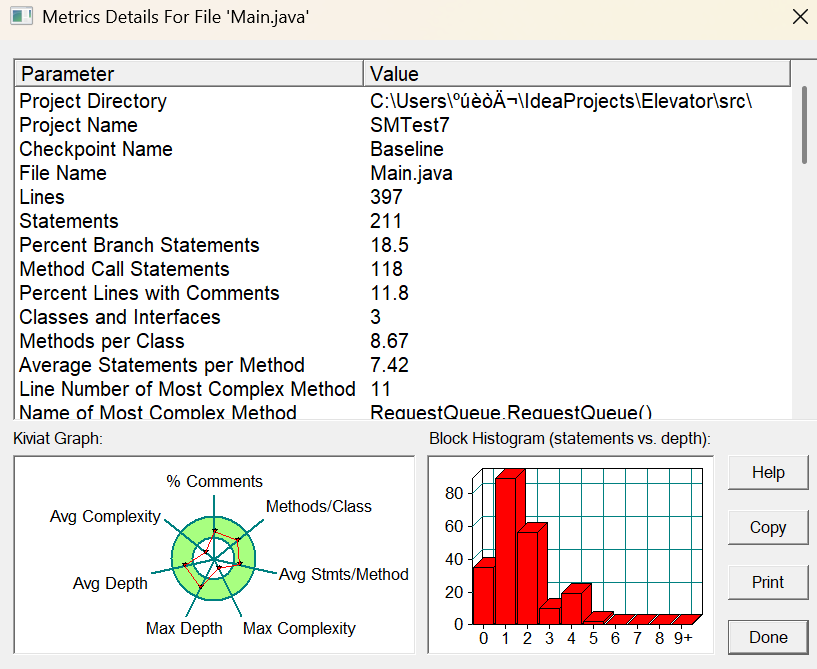| 方法名 | 复杂度 | 语句数 | 最大块深度 |