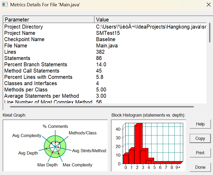 1.由静态分析数据可看出方法调用语句较多,有 45 条方法调用,可能导致代码的调用关系复杂,不利于理清程序执行流程。可对一些功能相近的方法进行整合,减少不必要的方法调用。