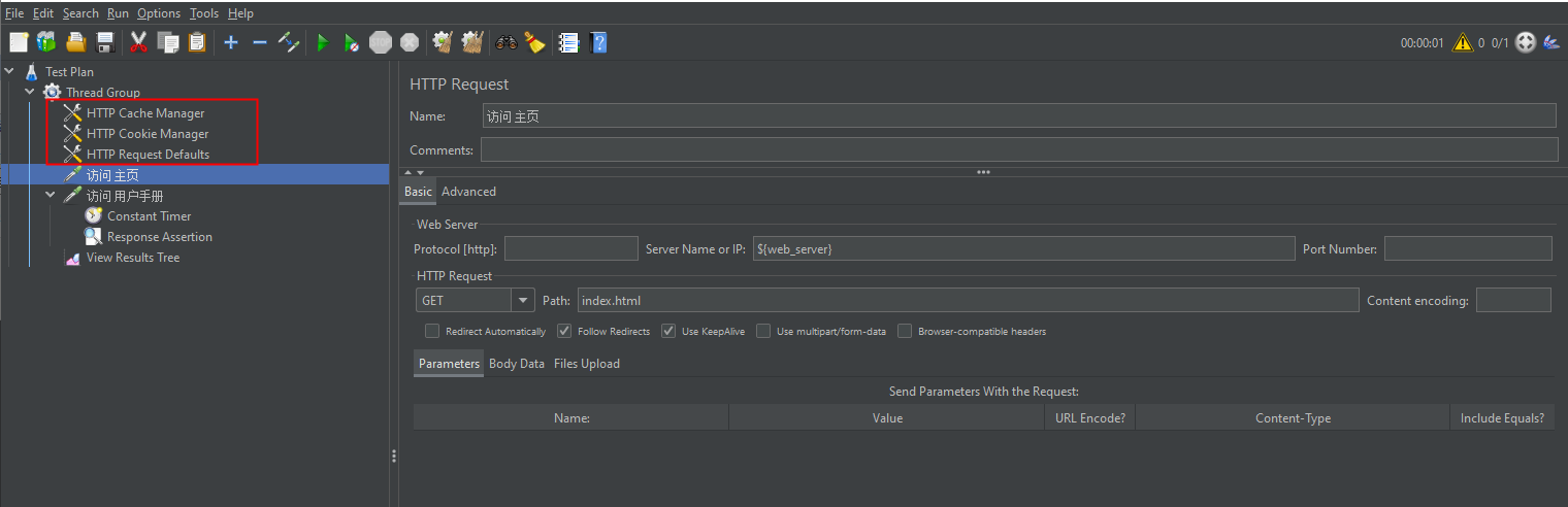 HTTP请求通常配套HTTP请求默认值、cookie管理器、cache管理器等