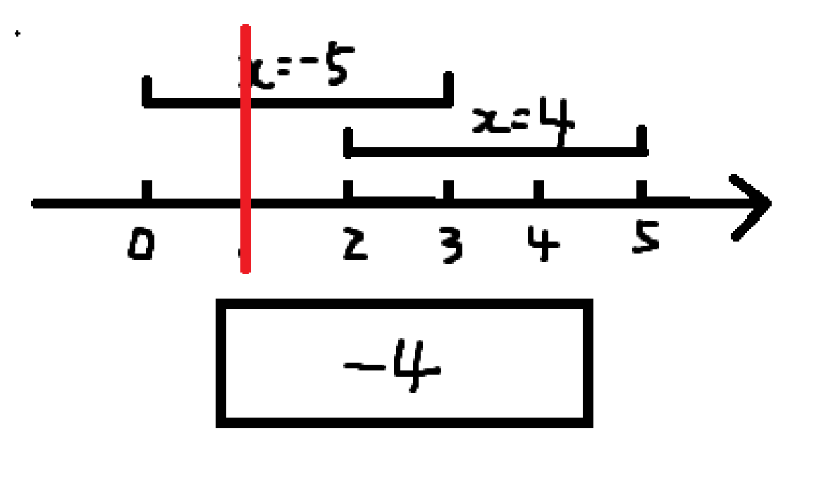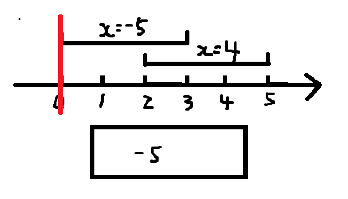 然后扫描线扫到 \(0\),我们发现这个位置是第 \(1\) 个询问的左端点,所以将对应的 \(-5\) 加入数据结构,然后全局加 \(0\),于是变成这个样子: