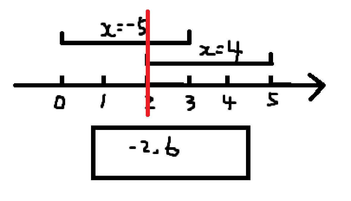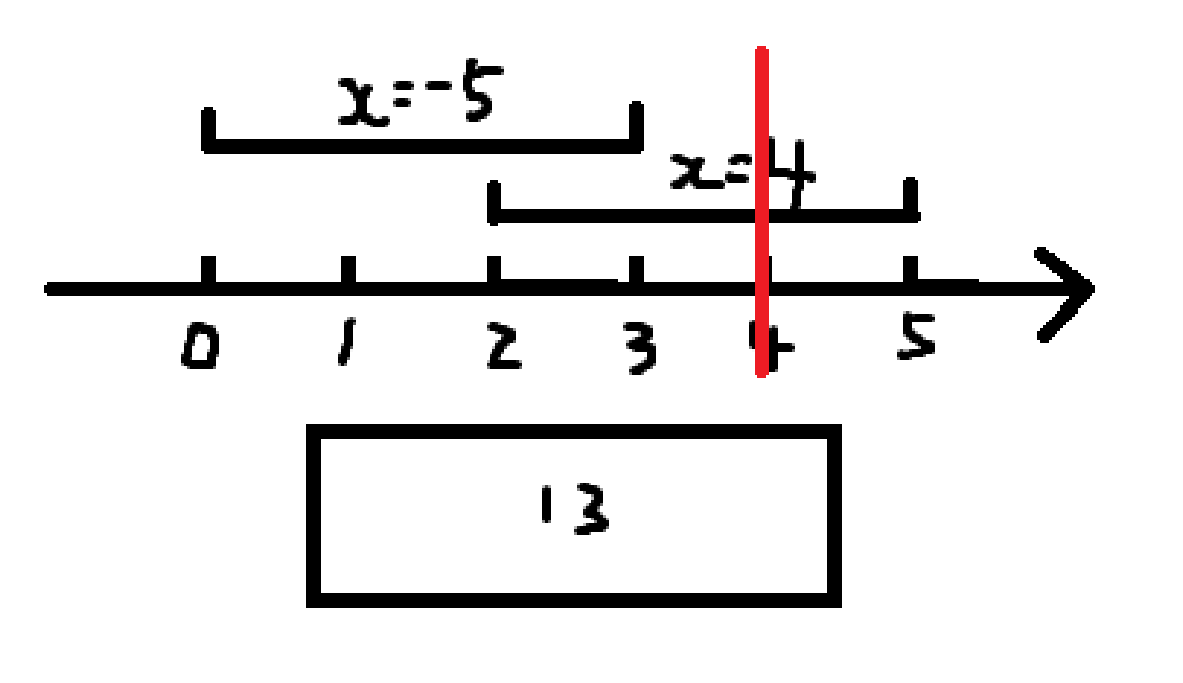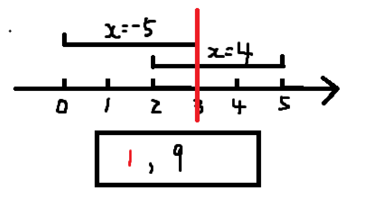 然后扫描线扫到 \(3\),全局加 \(3\),我们发现这个位置是第 \(1\) 个询问的右端点,所以第 \(1\) 个询问的答案就是 \(1\)(左端点在全局修改之前判,右端点在全局修改之后判),于是变成这个样子: