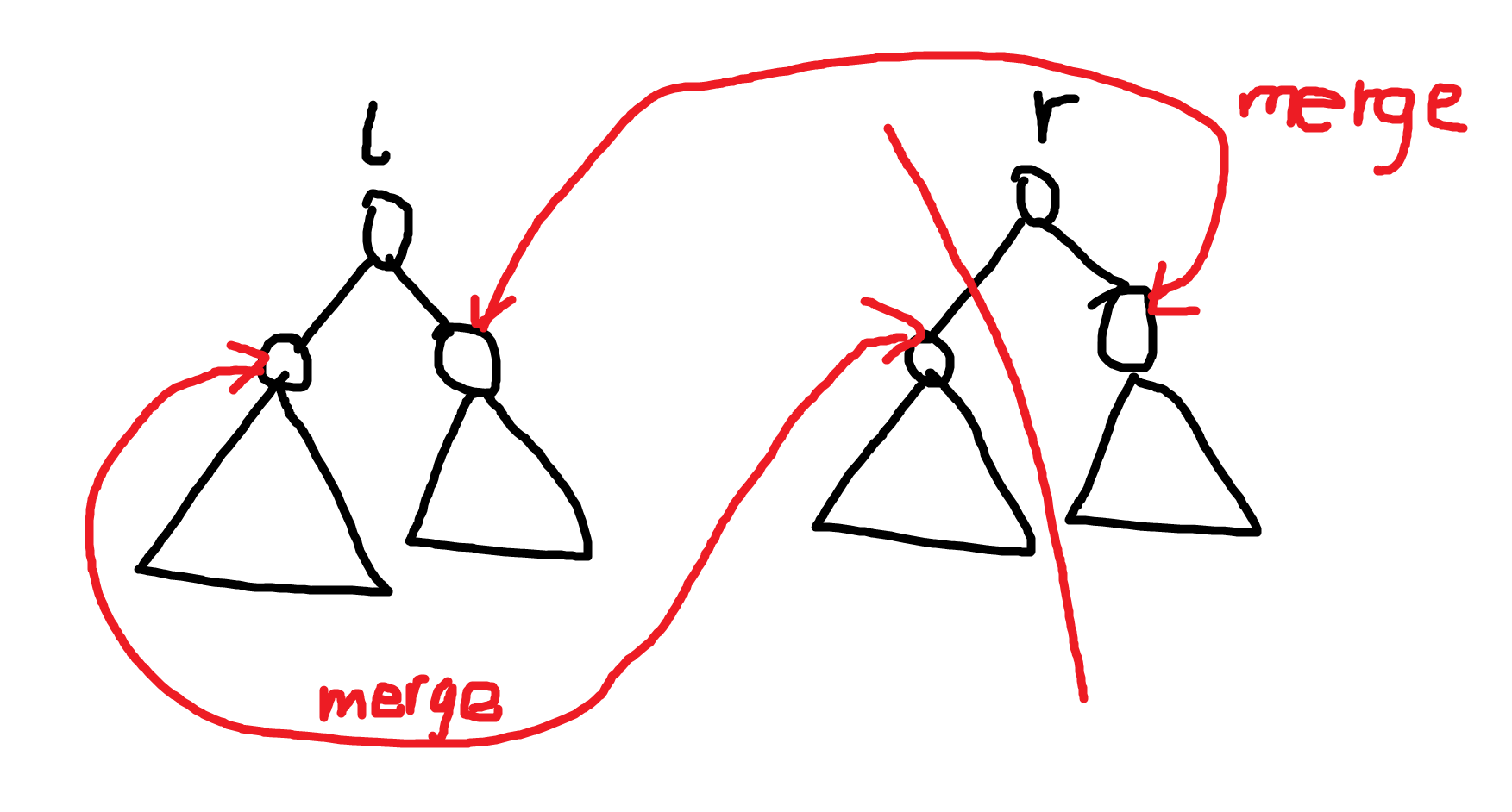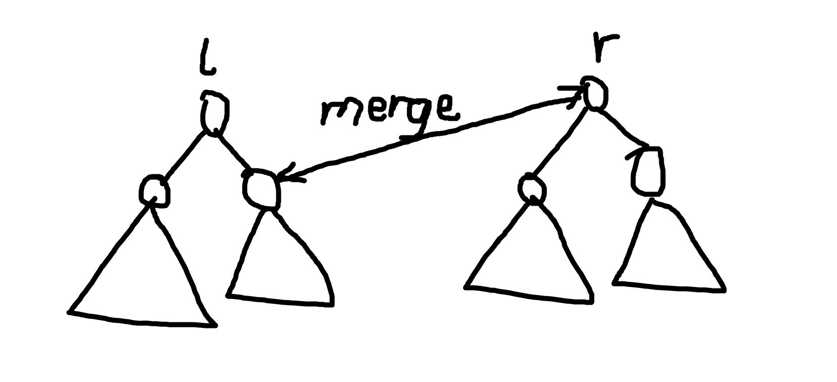 - 找到 \(randd\) 小的那个根作为合并之后的树根。