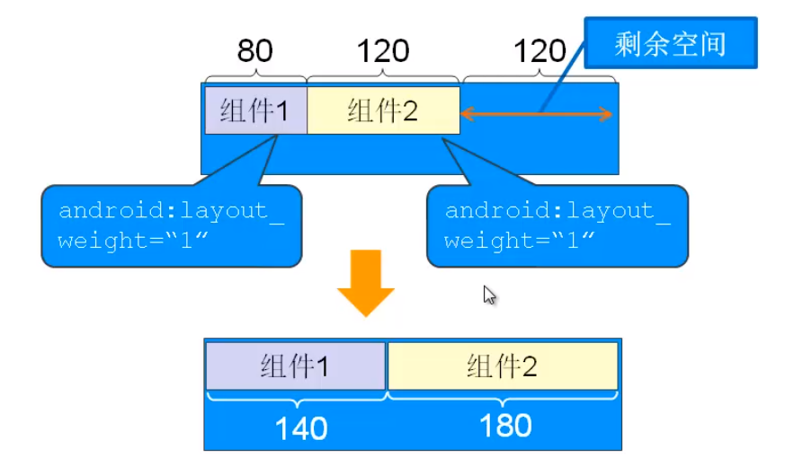 android:layout_weight="1" // 剩余空间分配占比,用weight标识,不写为0