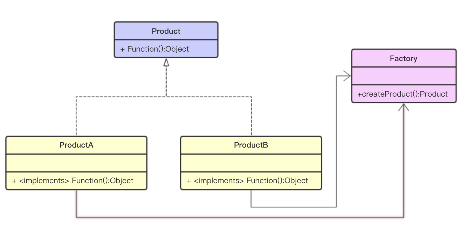 public class Factory { public Product createProduct(String productType) { if (null == productType) { return null; } if (Objects.equals(productType, "A")) { return new ProductA(); } else if (Objects.equals(productType, "B")) { return new ProductB(); } else { return null } } }