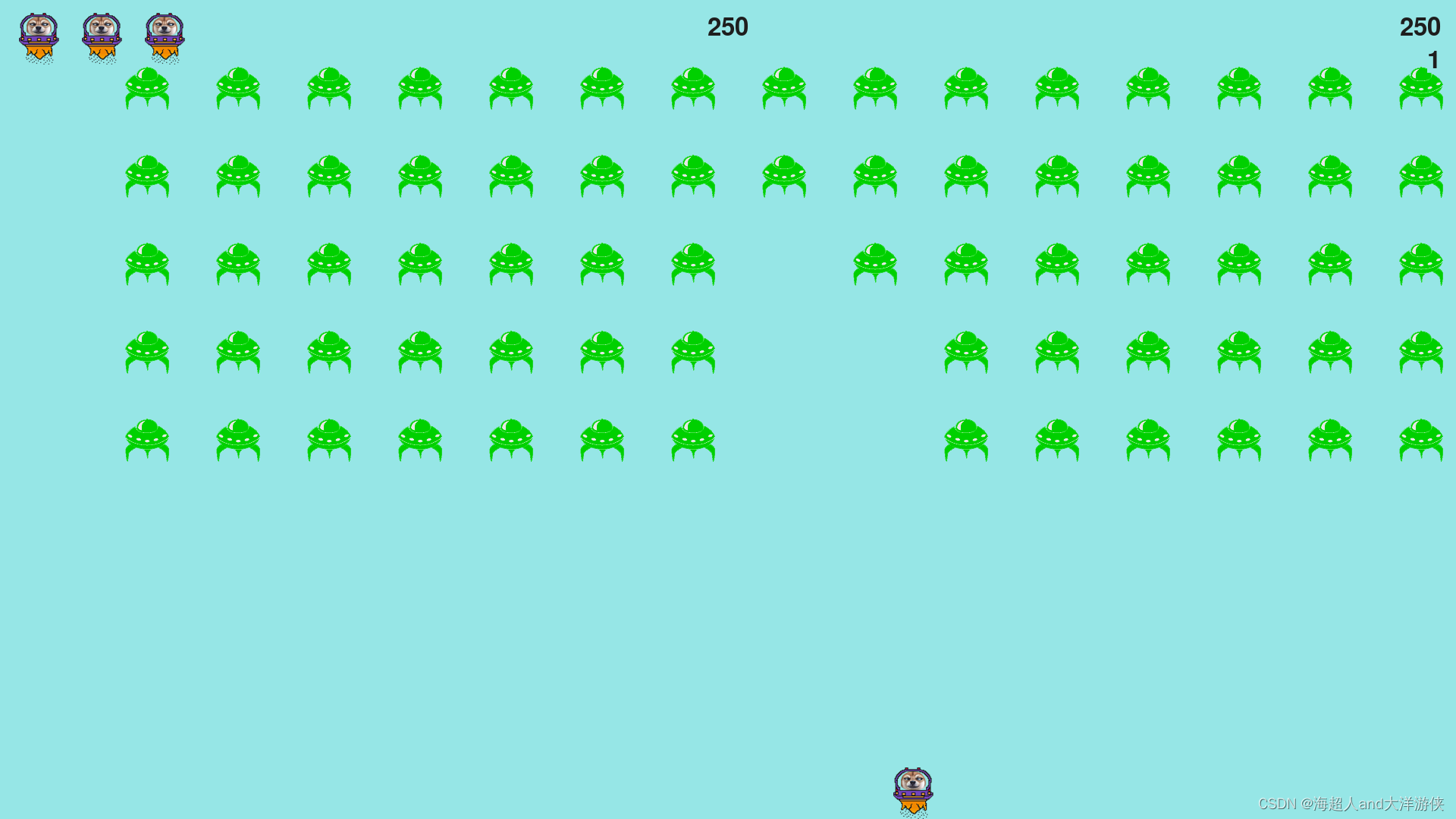 #创建一群新的外星人,并将飞船放到屏幕底端的中央、