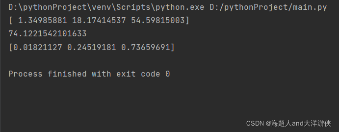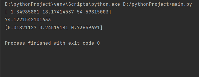 [9.99954600e-01 4.53978686e-05 2.06106005e-09]