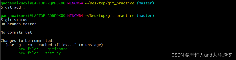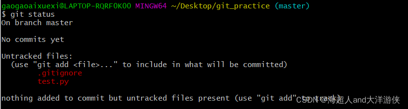 6、将文件加入仓库中并检查状态