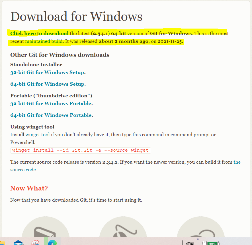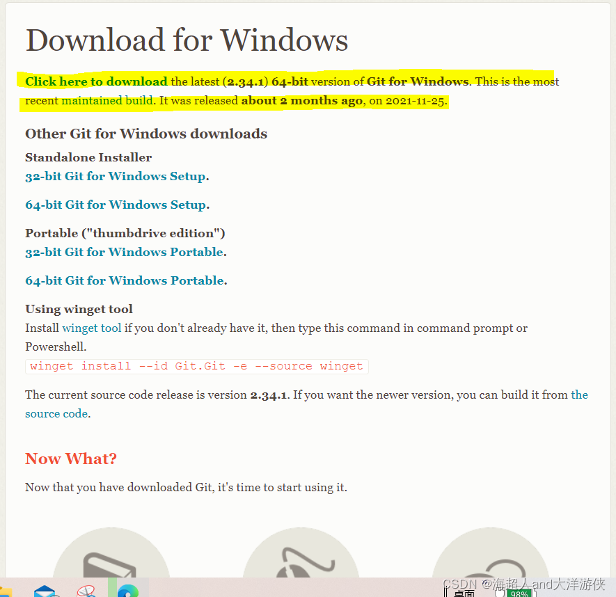 可从Git网站下载Git安装程序。这个网站中你将看到下载链接,只想适合你的系统的安装程序。