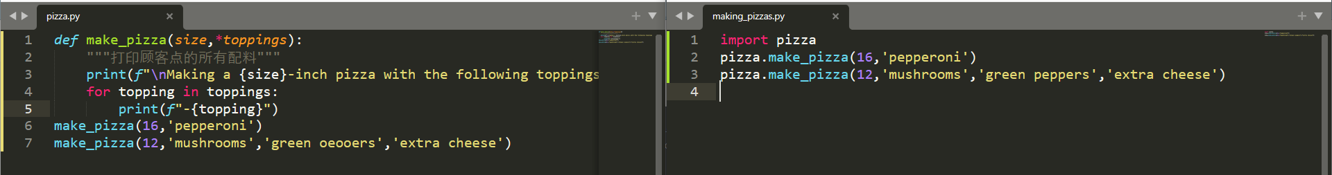 *topping中的的星号让Python创建一个名为topping的空元组,并将收到的所有值都封装到这个元组中。