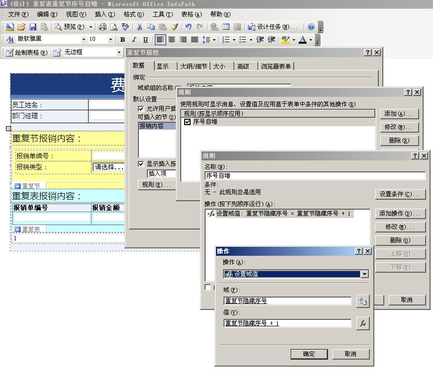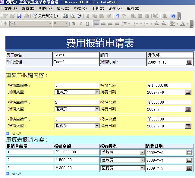 今天来讲讲Infopath重复节和重复表中实现序号自动递增的方法先来看看效果图