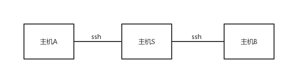 有三台主机 A、S、B,系统均为Linux。主机 A 和主机 B 在各自不同的内网,主机 S 为一台具有公网 IP 的云主机。主机 A 与主机 B 都可以通过 ssh 连接主机 S。如下图: