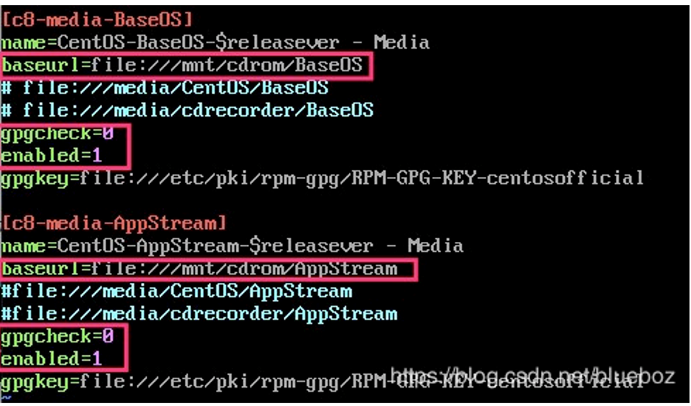 baseurl ,指定挂载的目录下的BaseOS 以及AppStream目录
