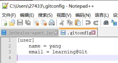 则在C:/用户/当前用户名/.gitconfig文件中就会出现相关信息