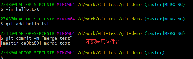 2、我们现在站在 master 分支上合并 hot-fix 分支,就会发生代码冲突。