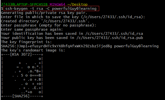 ※注意:这里设置用户签名和将来登录 GitHub(或其他代码托管中心)的账号没有任