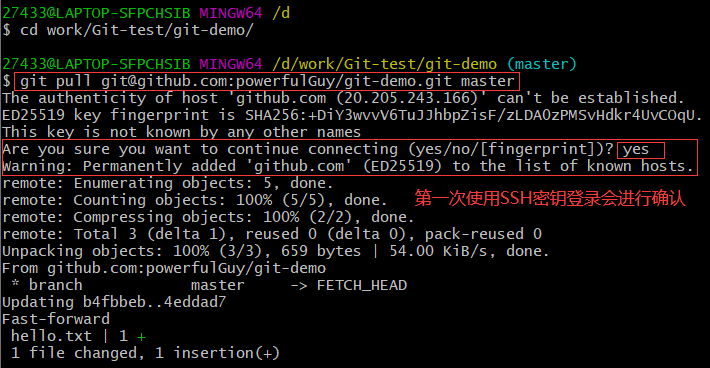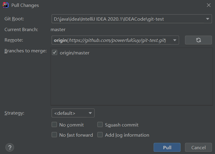 注意:pull 是拉取远端仓库代码到本地,如果远程库代码和本地库代码不一致,会自动
