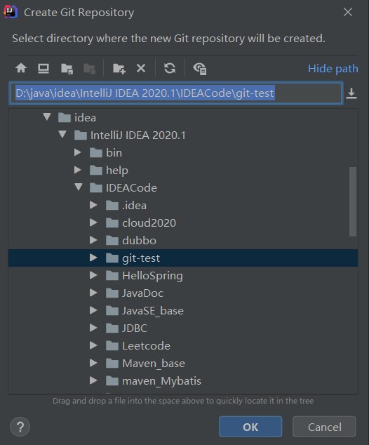 而我们不使用 git bash here+ git init 创建,我们要在IDEA初始化本地库,我们只需要如下图 创建 Git仓库就行了