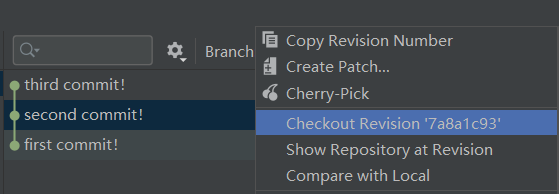 切换版本:选择某个提交版本,右击选择Checkout Revision 版本号即可