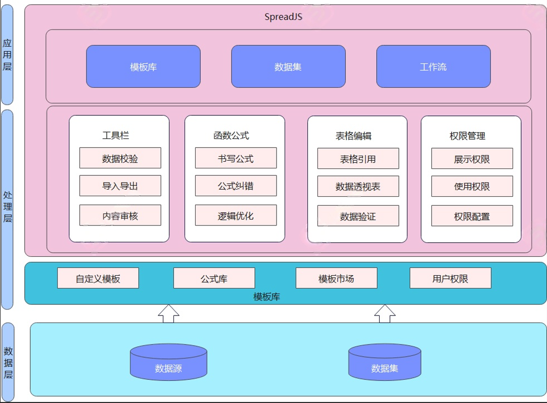 下图展示了采用纯前端表格控件SpreadJS实现考勤薪酬系统的架构图,该系统深度融合了Excel的强大功能,借助SpreadJS实现了数据的高效管理与操作。