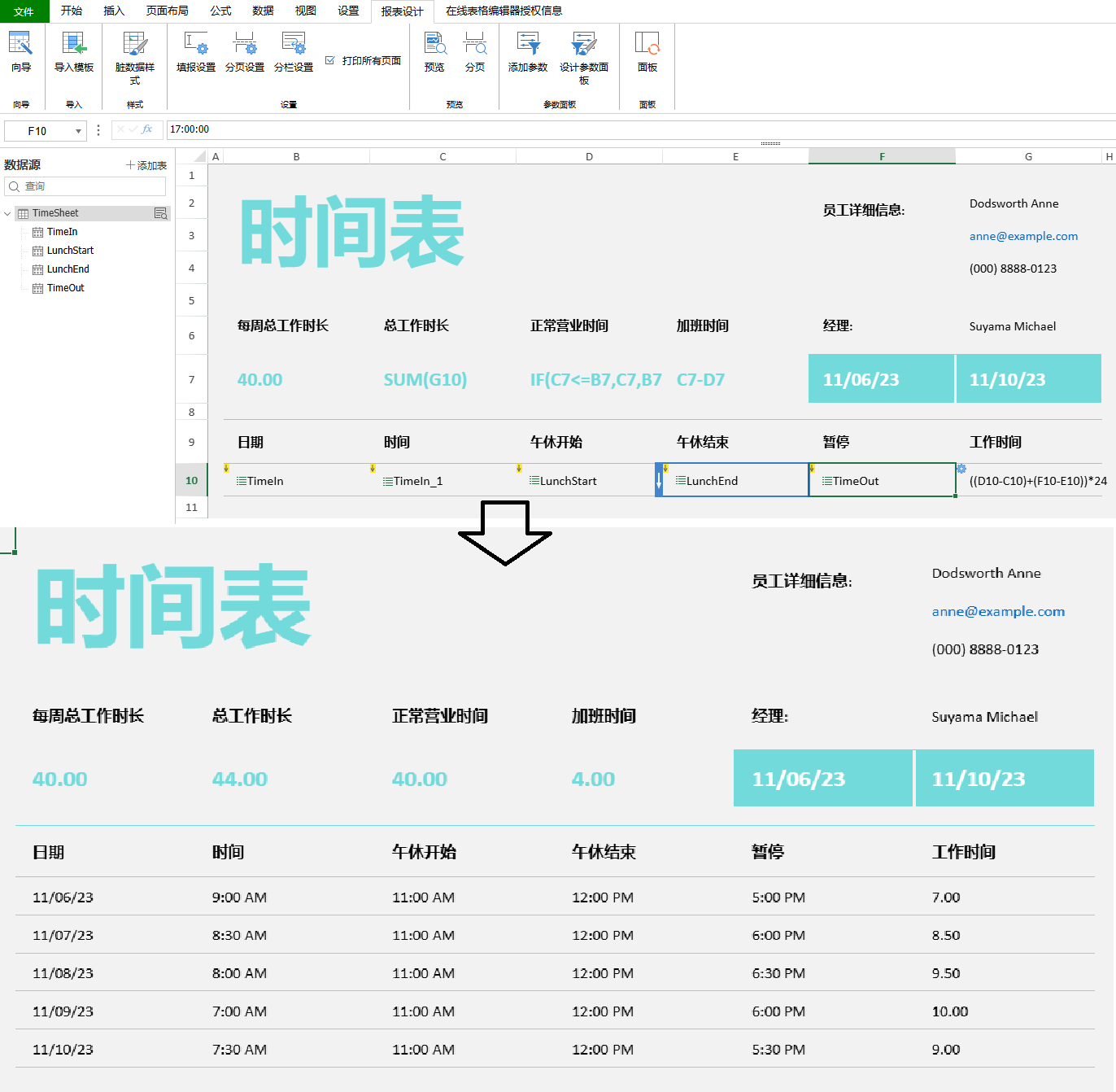 员工工作时间表:用于规划和记录员工工作时间,包括班次安排、加班时间、请假记录、出差安排等;