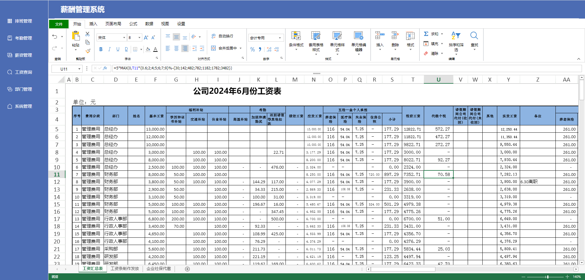 SpreadJS允许企业根据特定需求自定义公式和函数,从而灵活配置考勤和薪酬规则。无论是计算基本工资、绩效奖金、各类补贴,还是处理税收扣除,甚至是实施特殊的考勤规定,如弹性工作、远程工作策略,企业都能通过自定义公式来满足这些复杂需求。