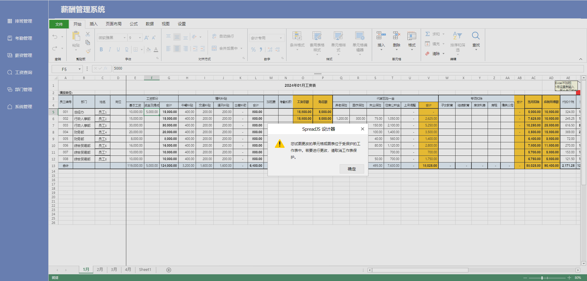 - 自动化赋能,释放人力资源潜能:通过自动化处理考勤和薪酬数据,系统能够显著提升工作效率,降低人力资源成本。尤其在处理大规模员工数据时,引入SpreadJS能够大幅减轻人力资源部门的工作压力,使团队能够专注于更具战略意义的工作。