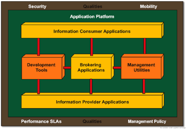企业连续统一体:EA 专业人员和涉众的资源库,例如,模型、解决方案模式,和其他可以在企业架构实现和裁减过程中用作构建块的资产。