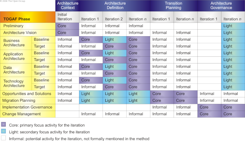 TOGAF架构开发方法(ADM):ADM是一个可靠的,行之有效的方法,以发展能够满足商务需求的企业架构,它是TOGAF的关键。