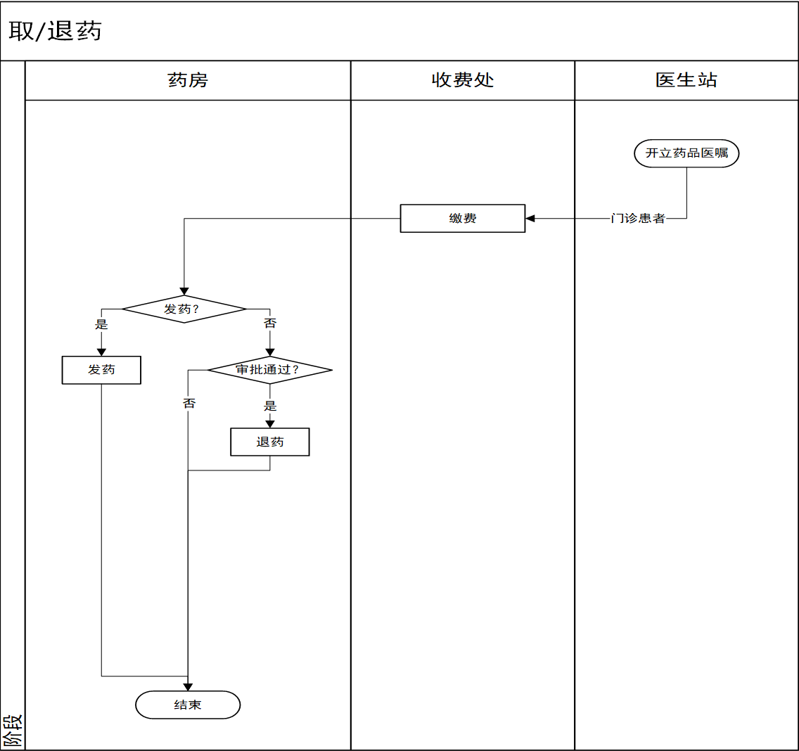 | SRHIS04 | 取/退药 | 患者缴费后可以到药房进行取药。 |