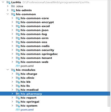 his-modules: 系统中的功能模块。