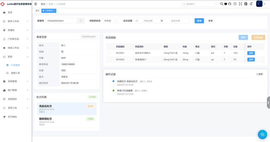 可以根据患者号,查询到患者的医嘱列表从而对患者进行发药操作,如果一旦发药之后,将会更新医嘱的执行情况,医生无法直接取消医嘱,需要进行医嘱的取消申请操作,在医务科和执行科室审批通过后方可取消。