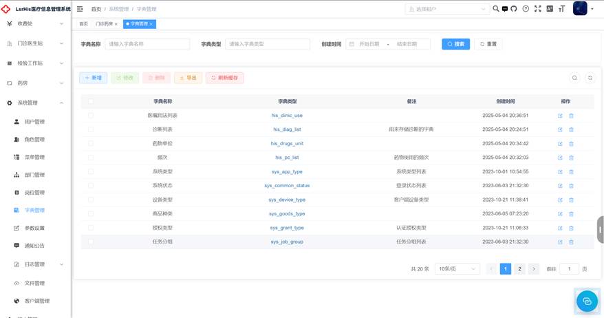 在整个的流程中,很多很多的字段是以下拉框的形式方便医生去选择,这些以字典给的形式保存到系统字典表中,医生也可以进行维护。在需要时可以向后端发送请求通过字典类型查询字典表sys_dict_data表。