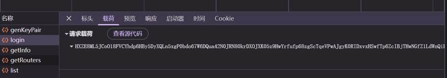 以上是一个加密的实例,由于用户登录过程中涉及到一些敏感信息所以请求载荷为一大串字符串,是前端使用了后端的公钥进行了加密,防止用户登录信息泄漏。