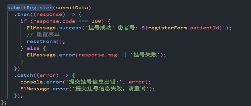 在前端定义好接口后便在正式的vue文件中引用进来正式向后端发送请求,并对响应数据进行处理。
