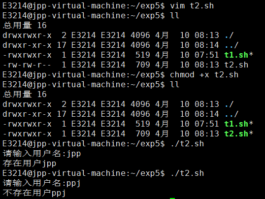 2.编写一脚本,判断输入用户名是否存在,输出结果只能是存在该用户或者不存在该用户,不能有其他数据输出。