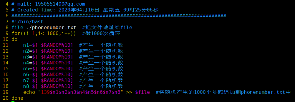 7.编写脚本,生成一个phonenumber.txt文件,文件内容为随机产生以139开头的手机号1000个,每个手机号占一行。
