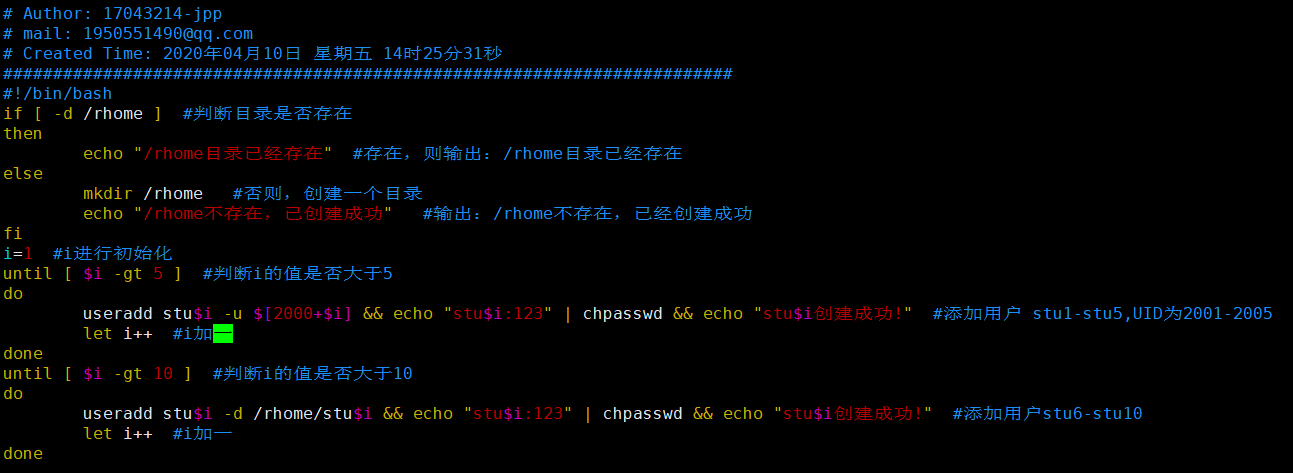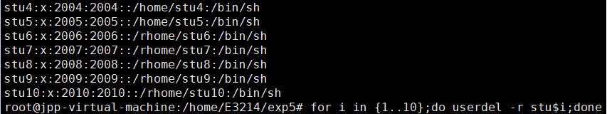 9.使用 until 语句批量创建10个用户,要求 stu1-stu5 用户的 UID 分别为 2001-2005 , stu6-stu10 用户的家目录分别在 /rhome/stu6-/rhome/stu10