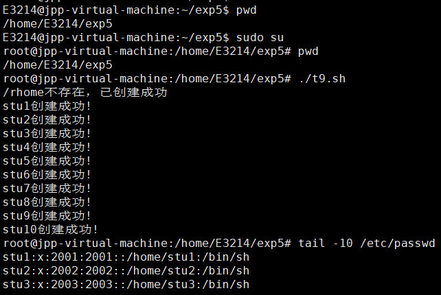 注:由于ubuntu18不支持passwd --stdin这条命令,所以我就用chpasswd这条命令替代了,并且增加了用户成功创建的提示命令。
